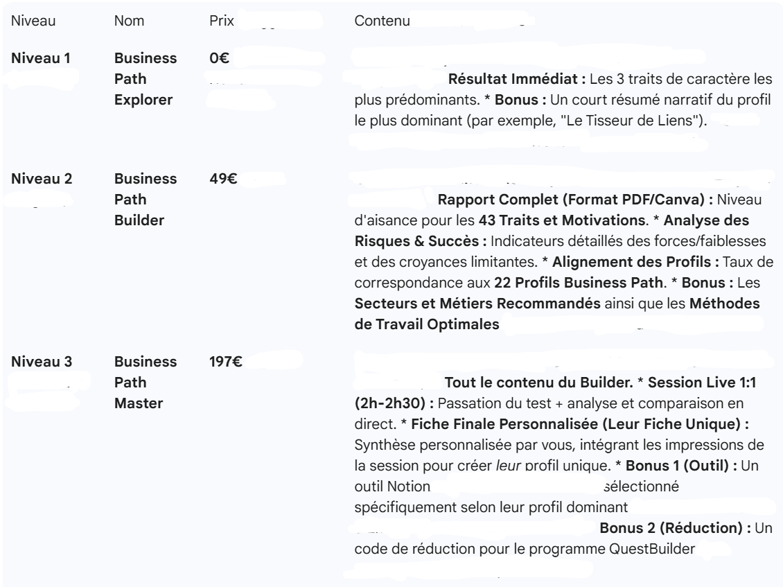 Le Business Path est un service personnalisé et manuel. C'est pour cela que nous avons décliné l'offre pour te donner le choix de l'investissement qui te convient le mieux.