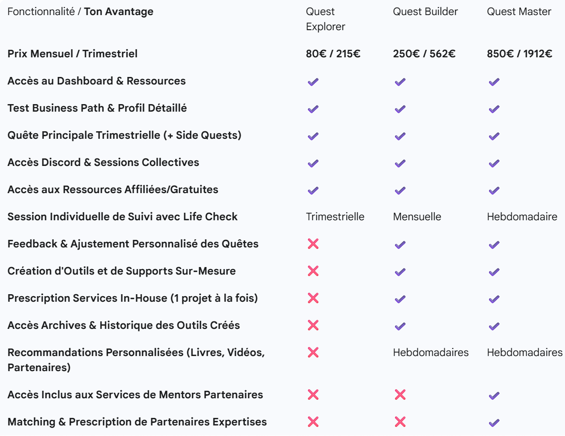❌ QuestBuilder n'est PAS pour toi si tu cherches des "hacks" rapides ou des solutions miracles sans t'investir en profondeur. Ici, on bâtit du solide, du durable, de l'aligné.